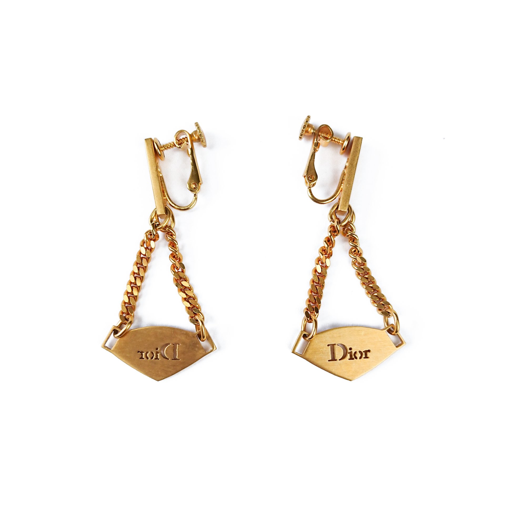 Dior Gold Logo Plate Earrings
